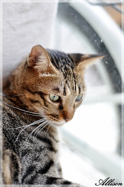 這隻貓是在外頭招牌下的貓,我們還跑出去拍他,但他有心事,就算靠的再近他也是在望著遠方,他有心事~有心事!!