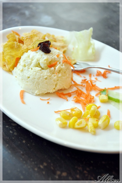 我們都點了套餐,有主餐、沙拉、飲品;沙拉看起來不大盤,但蛋沙拉味道還不錯,屬於清淡的口味。