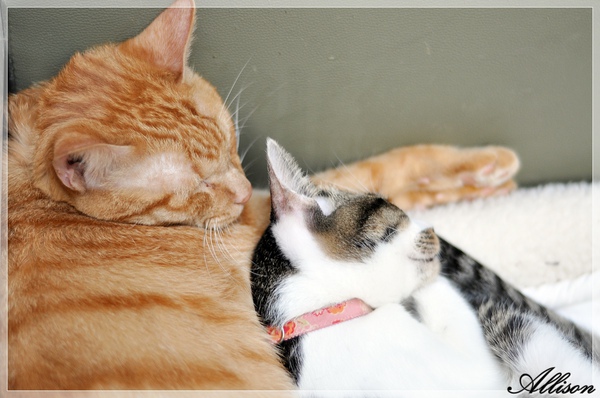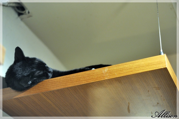 這隻黑白貓也很有趣,明明台子不大,已經擠了一隻貓了,他也要擠上去跟他一起窩,二隻甚至還睡起來了,他的眼角受傷了,所以才會有那黃黃的痕,不過他很乖~(知道名字的也記得跟我說喔)