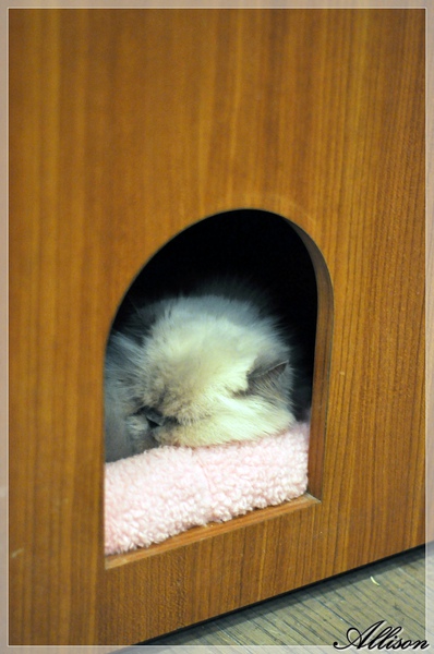 找到了找到了~就是他~看到小豬blog中的照片,我就愛上他了,實在太可愛了,他是”阿喜”,他是喜瑪拉雅貓,所以叫阿喜,是一個熟客跟我說的。
