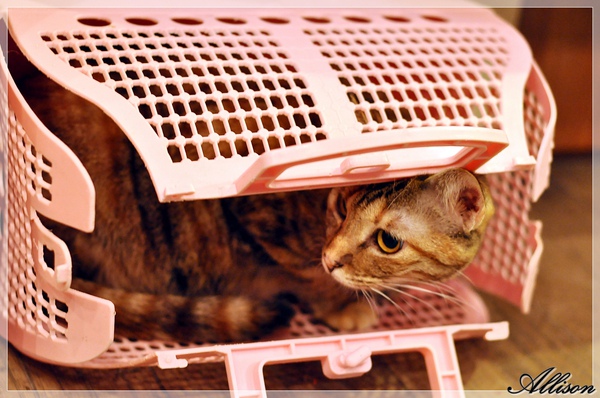 貓兒連外出籠也躲,是想說躲進去就可以出去玩了嗎?