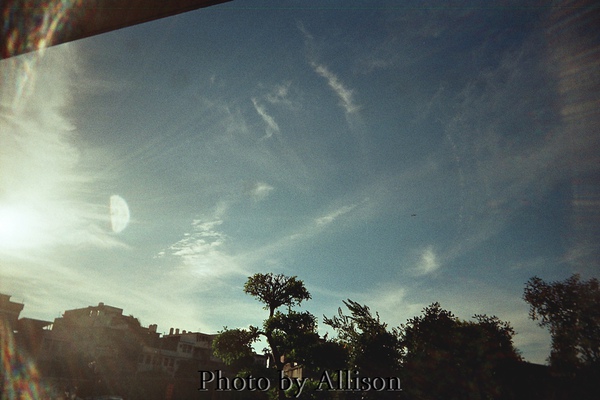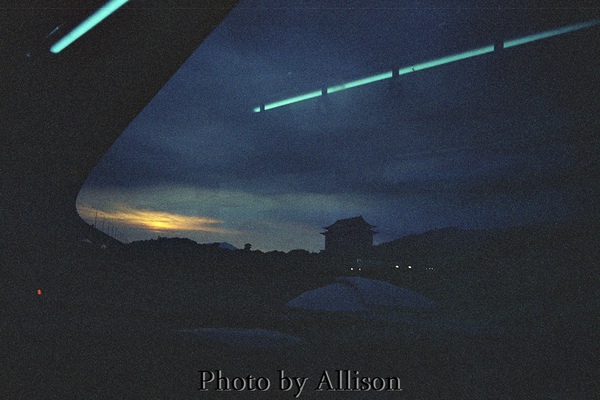在車內要拍天空,但很灰暗。(傍晚時分)