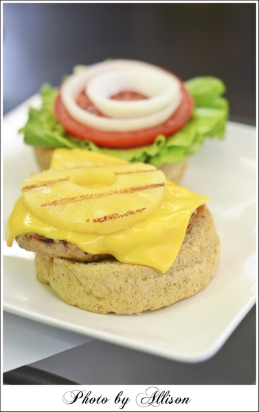 閃光先生點的夏威夷雞肉漢堡,上面的鳳梨片實在很可愛,還有烤過的痕跡,而且很甜,我有把他搶去吃XD,下方的雞肉有微微的炭烤味,也很好吃。