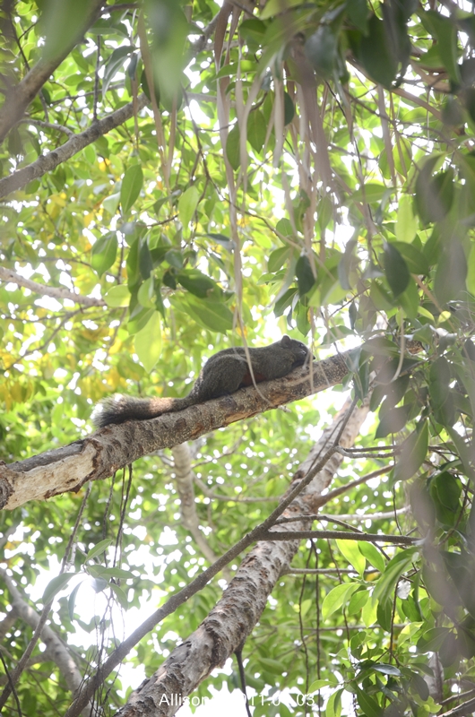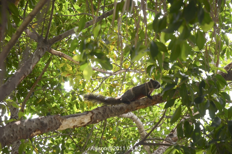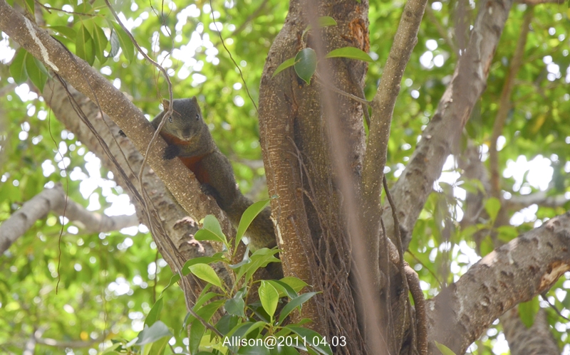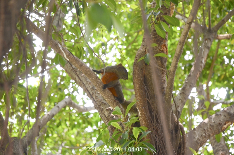 仔細一看,腹部是紅棕色的,應該是赤腹松鼠吧!