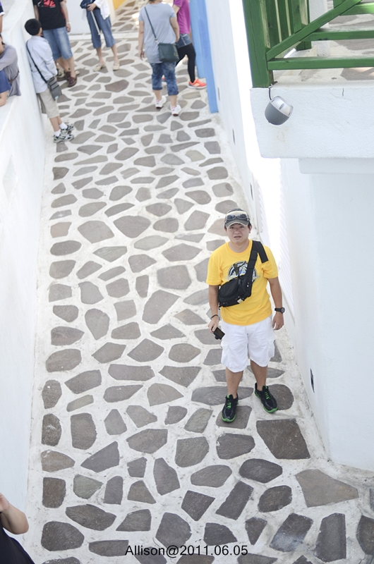 接下來就帶大家前往希臘風的〔聖多里尼城區〕當然藍色與白色的著名建築物可是不能缺少的,只是這一區因為屬於〔拍照區〕,因此要卡位不要拍到其他的人兒,實在是有難度的,所以這裡小布並沒有按幾張,不過知道要到這裡來,還特別帶了之前買的小洋裝來拍。