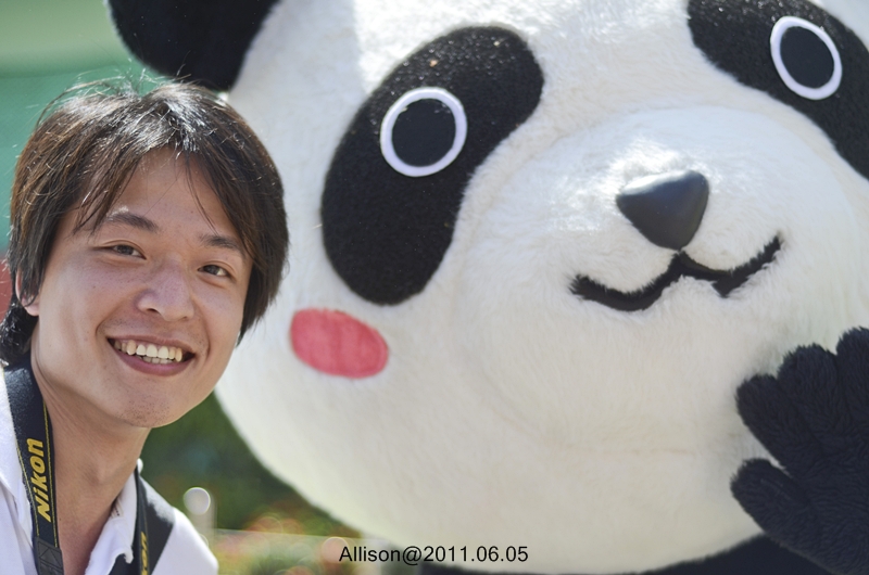 馬上叫過來拍照,不過本來是我要跟他合照,結果閃光一直說我要拍啦我要拍啦~~厚~我手上這支是35mm耶!一時之間是要叫我退到哪裡去丫!熊貓臉頓時占了畫面的2/3。