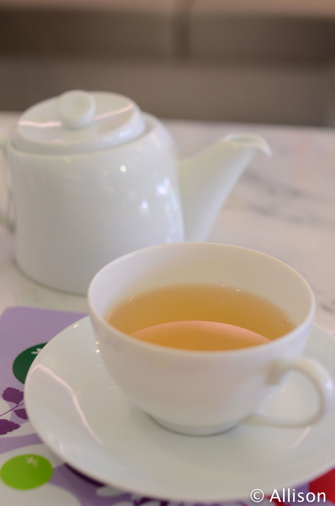 來回翻了幾次的目錄,由於名字都很特別,沒有我一慣點的名字出現,所以考慮了一會,選了一個”開心果布蕾佐熱巧克力”,單點的價格是350元,套餐的價格是400元,我選擇了套餐可再點一壺茶,這次選了蘋果什麼茶的有著很青蘋果的香味,很順口的茶。