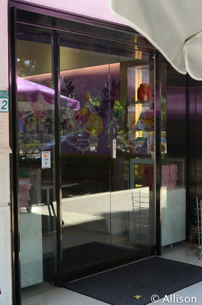 坐上公車第一站來到仁愛路,時間是11點半,第一個點的阿朗基還沒開門,原來他12:00才開,但天氣炎熱很想找個地方遮陽,走沒幾步路,看到一個繽紛的店家,名字是MICASA DOLCI,從外觀看起來很像是賣蛋糕捲的小店,因此我走了進去。