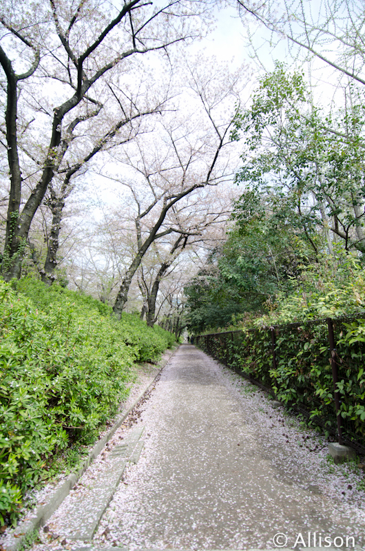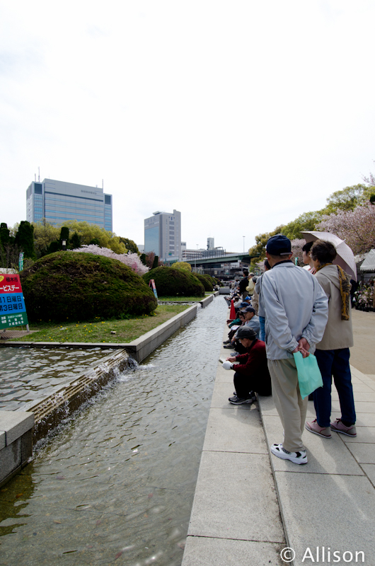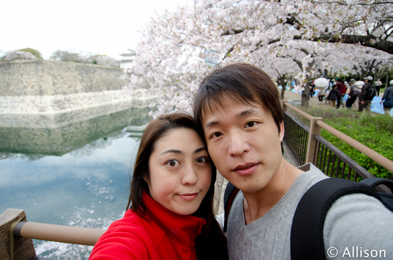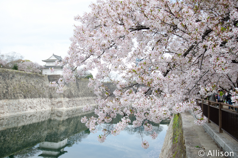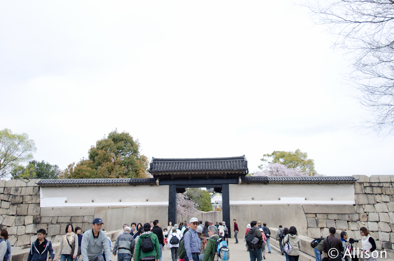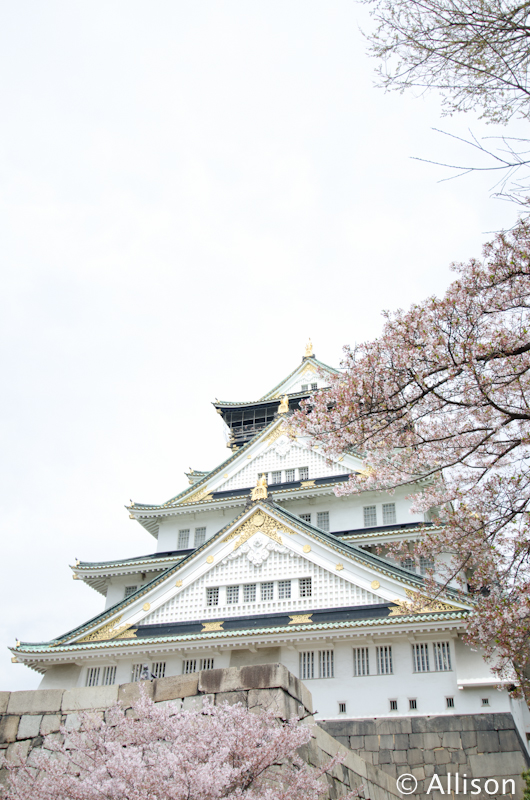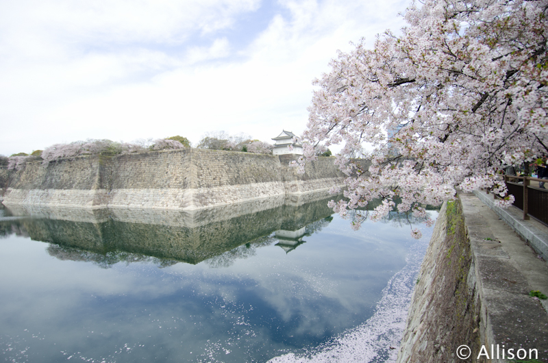 來到大阪城的主要目的還是櫻花,不過呢~我們來的時間點太晚,有不少的櫻花都謝了~剩下的就是枯枝,不然就是散滿地上的櫻花地毯了。