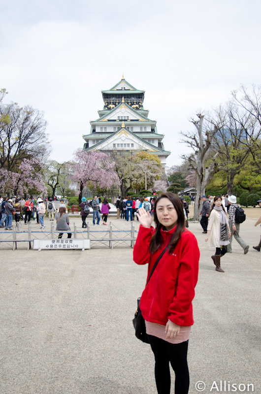 大阪城天守閣旁的櫻花都已經謝了,好可惜沒有拍到大阪城跟櫻花的相輔畫面。