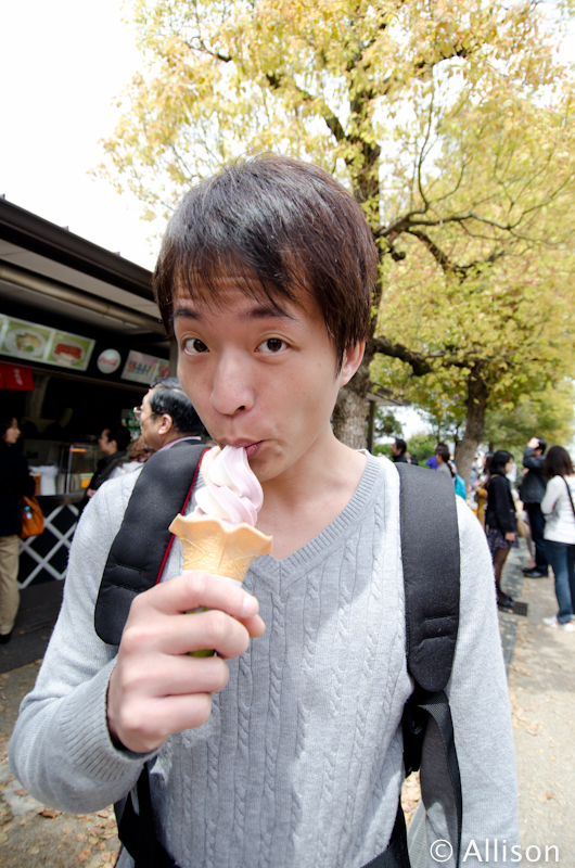 出了天守閣,發現有攤販,立馬買了冰淇淋來吃,是牛奶口味的,好好吃!