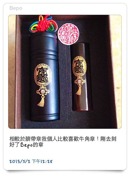 印章的部份小布是自己去刻的,選用赤牛角耐摔又好蓋,可以用很久。