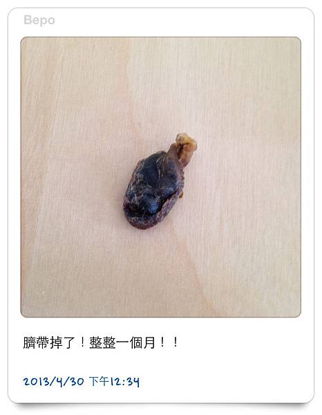 BEPO的臍帶則是真的在滿月的那一天掉了!!真的很久~害小布每次在幫他消毒時都很害怕。