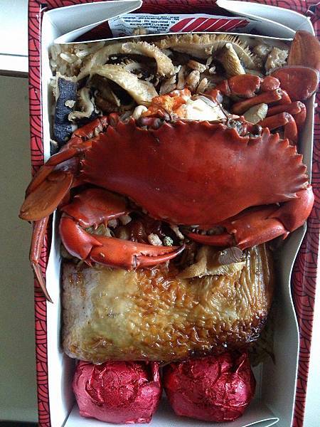 而這一盒是特別給布媽的,因為他愛吃螃蟹,難得的機會讓他吃一下,先補一下不然開始照顧BEPO後可能要好好吃飯都有難度,據布媽所說那隻螃蟹很甜又有肉也有蛋也,他大滿足。