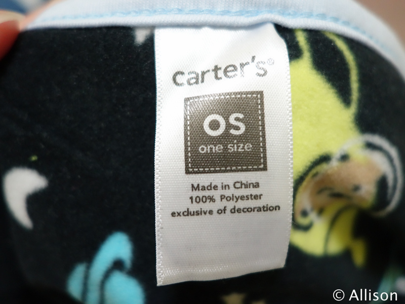 產地是中國,材質是100﹪聚脂纖維,目前Carter's的東西,在網路上還滿好買的到的,團購開團的也不少,價格上不會很貴。