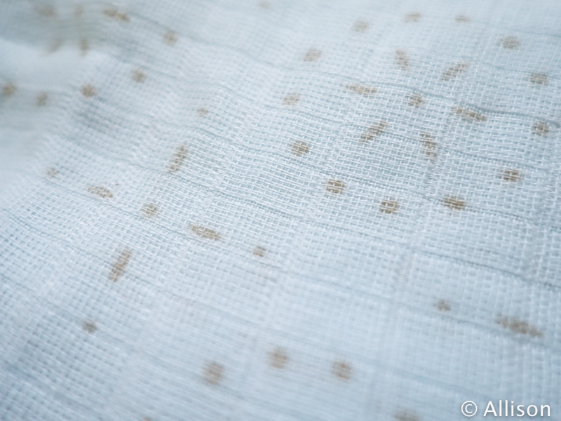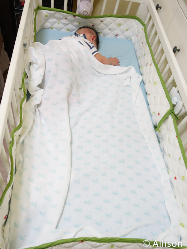 swaddledesigns薄棉羅紗包巾近拍,為什麼連包巾也拍,這就要說明一下了,小布買的包巾是方形的,從BEPO出生就用來包他之外,出生二個月後到五個月之間,BEPO睡覺都是蓋包巾!因為他透氣,而且也有小小的保暖效果,另外如果出門我們也會帶一件出去當哺乳巾,很輕很薄十分好用。