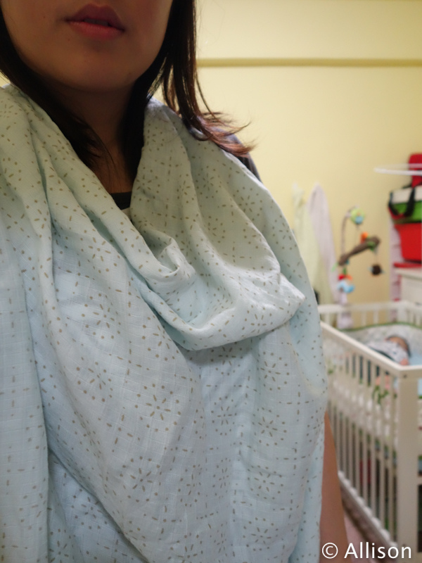尺寸是120X120CM,也是很輕薄款,但如果要當哺乳巾,千萬別帶白色款的出門,太透明了~~羞。