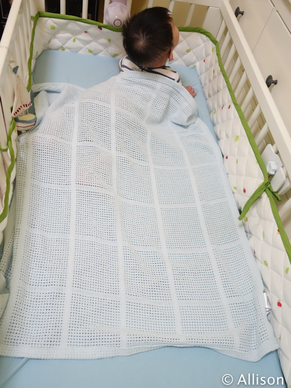 洞洞毯近拍~目前秋天有時候晚上是涼涼的,如果要給BEPO蓋毯子,我們會選擇洞洞毯,因為他有洞,所以比較不會有“窒息“的危險,也比較透氣,針對BEPO這種很會流汗體溫又高的BABY來說相當的適合。小布前後買了五條,都拿來送給新生兒當禮物。(妮妮寶貝出生時,乾媽我就是送上了大/小各一條,當時是在百貨公司的櫃買的),後來今年才遇到有在英國可以帶回來的”網友“,幫我又帶了三條。