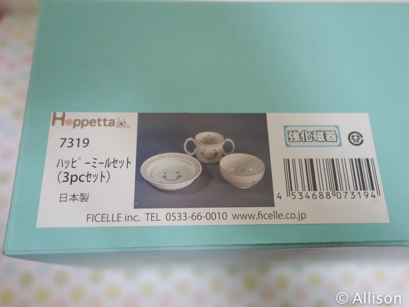 而這組餐具是日本製的(好安心XD),另外他是屬於強化磁器,所以也比較耐摔一點!(但我不敢做落下測試),而且在我家是有加上地墊而且餐椅也是立在地墊上,因此掉下來是不可能摔破的啦!另外也比較不容易有刮痕。